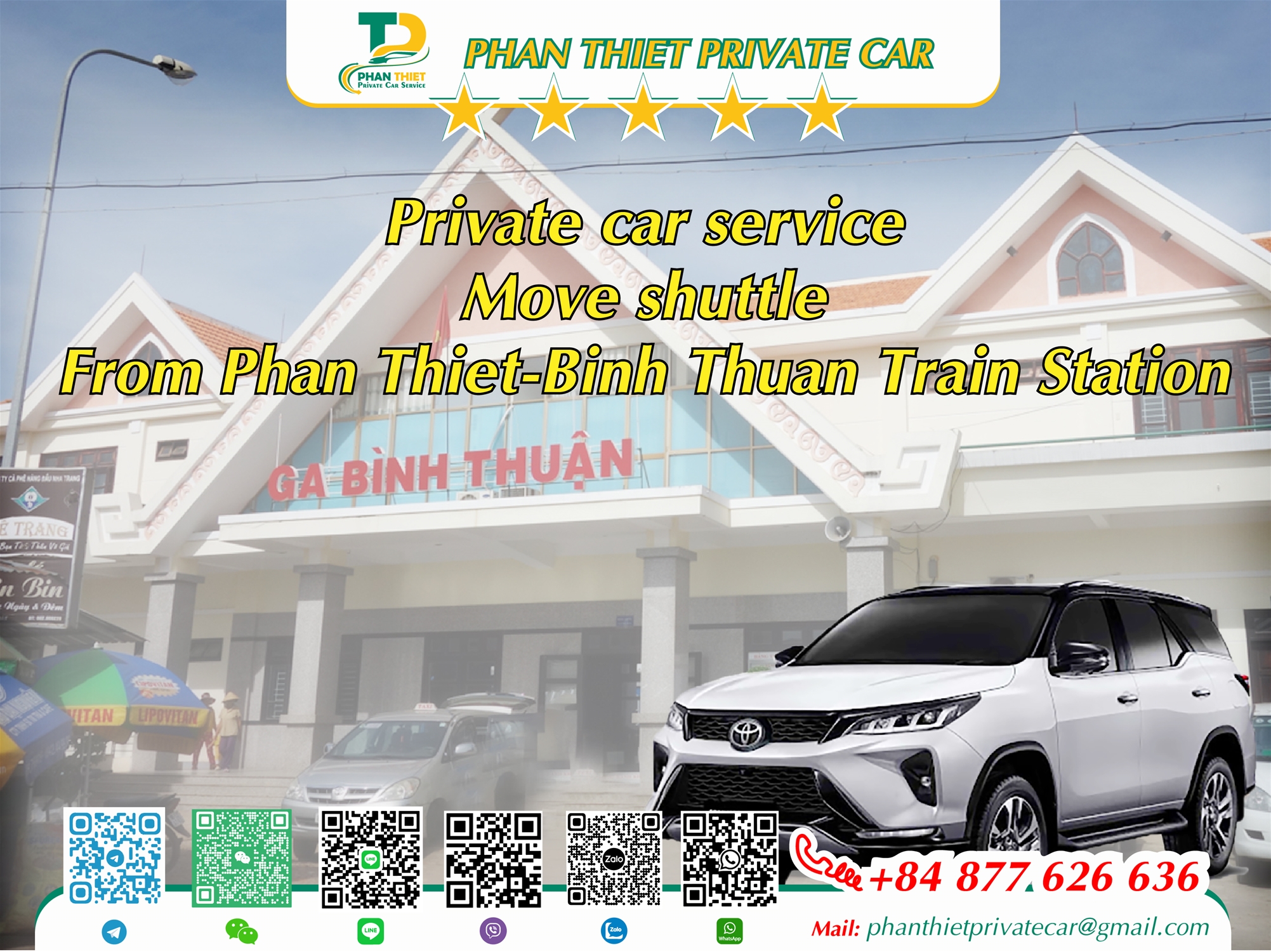 Don't hesitate any longer, contact us now to experience it Private car service from Phan Thiet or Binh Thuan train station Most professional and dedicated. We are always ready to serve you 24/7!